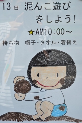 JUGEMテーマ:子育て 明日の未就園児の親子登園「カンガルークラブ」は 【泥んこ遊びをしよう】です。 持ち物:帽子・タオル・着替え 上履き・水筒(水またはお茶入り) ☆是非、お出掛け下さい。