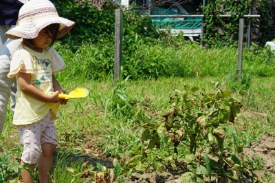 JUGEMテーマ:子育て 今日の未就園児の親子登園「カンガルークラブ」は 【水遊びをしよう】と【ジャガイモ堀り】をしました。 先日、幼稚園のお友だちも大きなジャガイモを沢山 収穫し、ののさまにお供えしましたが、「カンガルークラブ」のお友だちも お家の方と一緒に収穫しましたー スコップを手に土堀りから頑張りますっ!! 「でてきたでてきた」 お母さんと茎からひっぱってーーーーーー 大きなジャガイ...