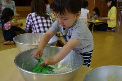 JUGEMテーマ:子育て 今日の未就園児のお友だちの親子登園 「カンガルークラブ」は「小麦粉粘土で遊ぼう!」 です。 ボールと小麦粉を用意して、粘土作りから スタートです 【小麦粉粘土の作り方】 ?ボールに小麦粉を入れます。 ?塩を少量加えます。 (傷みにくくなりますが入れなくても大丈夫です) ?サラダ油を少量入れます。 (サラダ油を入れるとよくまとまり ポロポロになりません) ?水を入れ丁度よい柔らかさまで混ぜます。 ?食用色素で色を付...
