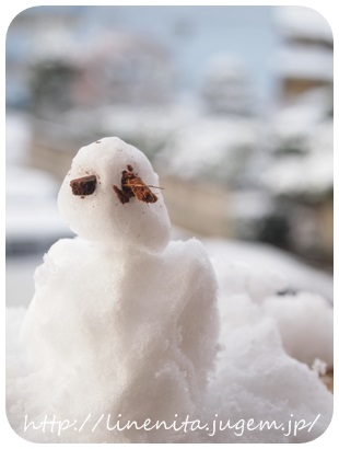 JUGEMテーマ:子育て 秋生まれの予定だった チビJですが 予定日が1週間以上遅れ ほぼ冬生まれ。 昨日は初めて雪を見ることができました。 と言っても まだ目がよく見えていないので ベランダから外を見せてあげたけれど 寒いのか 怪訝な顔をしていました。 そうだ! 雪だるまを作ったら 喜んでくれるかな?と思い 即席雪だるまを作りましたが。。。 なんじゃこりゃ。 まるでホラー雪だるま。 目が飛び出てまっとるがね。 ベランダに落ちていた 木屑を目にしてみましたが これじゃあ全く かわいげがな...