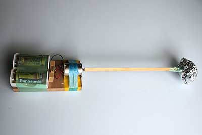 JUGEMテーマ:手造りおもちゃ お祭りの屋台等で人気投票したら必ず上位に来る「綿菓子」。 、「おもしろ実験・ものづくり事典 左巻 健男、内村 浩 著(東京書籍)」に造り方が出ていたのを見て、大昔の造形教室で試した際、子ども等にバカ受けしたのを思い出して、作ってみました。 下が、その試作機。