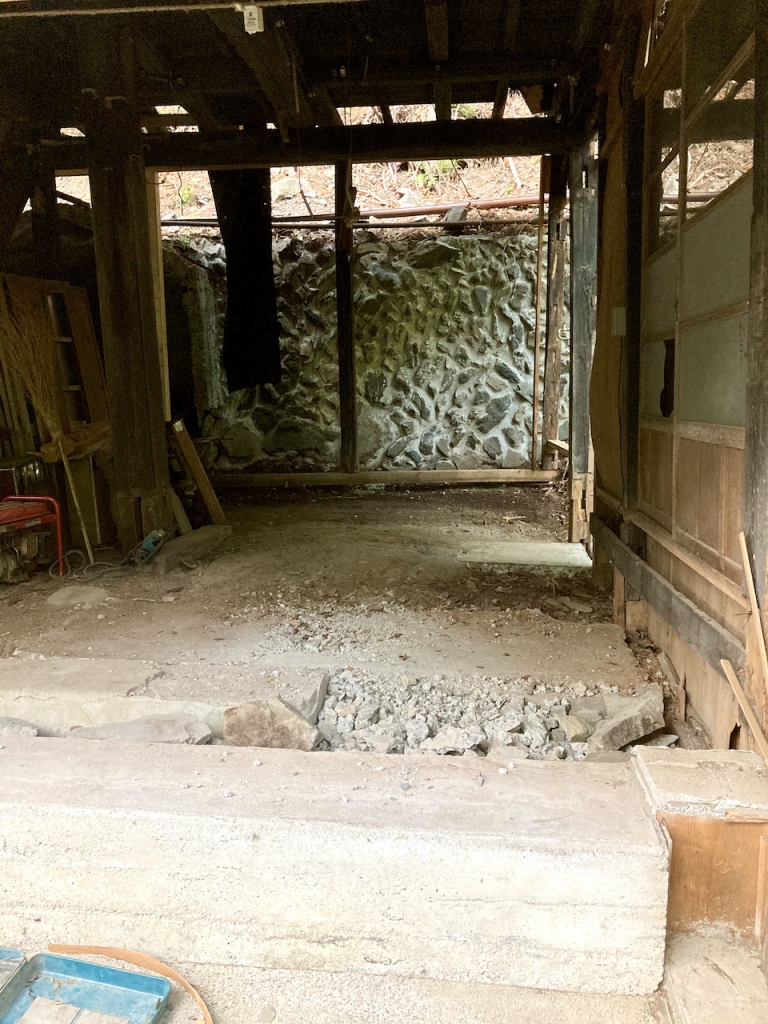 JUGEMテーマ:ソトアソビ スケルトンにしたら出てきた土間の跡。 手前のモルタルが昭和46年頃の改築で完成。 奥のモルタルが昭和初期もの。 令和のリノベーションではどう仕上げるか思案中。 盛り土してフラットにすると広くなりますが入口の仕上げをどうするか? このエリアはかなり重要な場所になりますので悩みます。