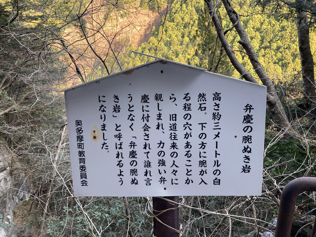 JUGEMテーマ:ソトアソビ むかし道にある弁慶の腕ぬき岩。 自然岩です。 画像で見るよりインパクトあります。 ここが貫通しています。 法面ギリギリにあるので岩の周りにはロープが張られています。 確かに岩の向こうを見てみたくなる気持ちはわかります。