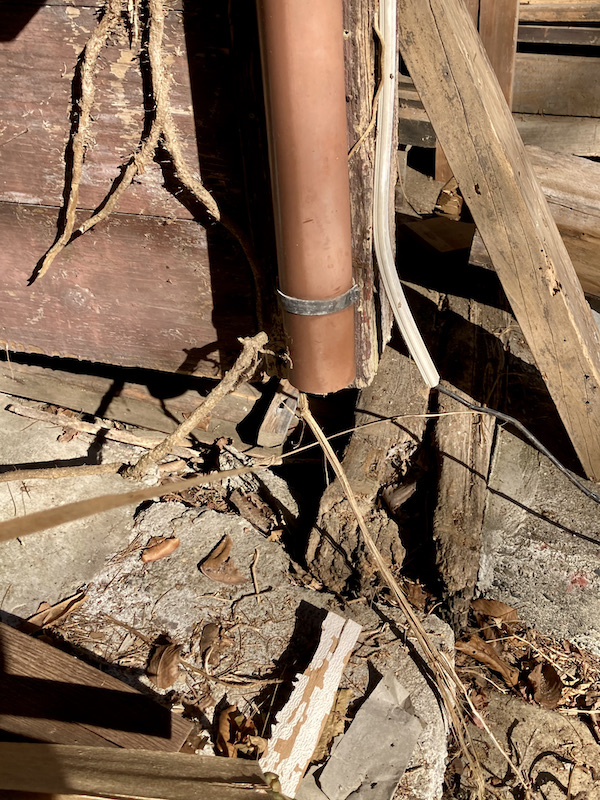 JUGEMテーマ:ソトアソビ この土台の上に柱があったのですが 地盤沈下と木材の腐食でこんなに隙間が。 沈下だけではなく川側に滑り落ちています。 この辺の仕上げの作業に手間がかかりそうですね。