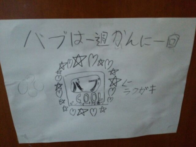 JUGEMテーマ:笑う子育て お風呂のバブあるあるです(笑) 先日、次男(小学2年生)は一人でおばあちゃんの家に泊まりに行きました。 そこで、ものごころついてから初めてお風呂の「バブ」を体験してかえってきました。 実は次男が小さい頃、バブをお風呂に一気に5種類入れたことがあり(どんな色になるのか見たかったそうです(笑)) それ以来もったいなくて買っていなかったのです。 ちなみにバブは5種類入れると、どどめ色になります!! そして案の定、次男は「なぁ、ママ...