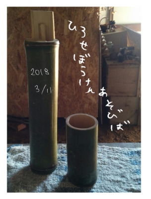 3月の冒険遊び場 息子がつくった竹水筒。 春休みに広瀬の山を歩くときに持っていくらしい ヽ(´▽`)/ 遊び場では、小さい子にノコギリの使い方を 教えてあげたりして、プレーリーダーのような 存在になってきた長男やまとです。 今までいろんなものを作ってきて、 {やってみたい}を形にして、、、 思いっきり遊んできて、、 失敗もいっぱいして これから大人になっても、 きっと。必ず、 やってみたいと思ったことを 失敗を...