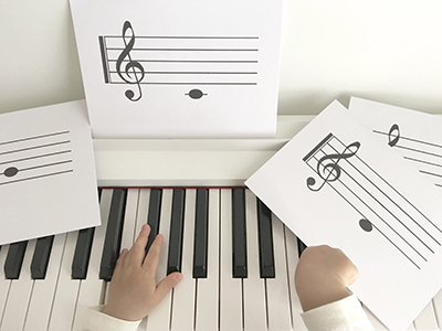娘が積み木を鍵盤のように並べて「サ・イ・タ〜 サ・イ・タ〜」とやっていたので、2歳ではまだ早いかなと思いつつも、電子ピアノを購入。おもちゃでも良いけど私が触りたかったので。また娘にかこつけて買い物してしまいました。 ピアノを習いに行けるのは少し先なので、まずは絶対音感の練習(?)をしようと思い、音符のフラッシュカードを作ってみました。ドのカードを見せながらドを弾くという具合です。裏面には音の名前が書いてあるので、楽譜側を見せながら「これはなんの音?」とか。発音させてみる...