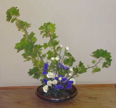 わかばいけばな教室は、 いけばなのおけいこをしています。 年に1度だけ、アレンジメントに挑戦しますが、 基本的に、いけばなをめざしています。 その違いって何でしょう? 花の色を混ぜないこと。 このあたりにカーネーション。 このあたりはスターチス。 フサスグリの枝で形を構成したあとの 草花のあしらい方ですね。 がんばって、いけなおしてくれました。 違いをしっかり理解できたと思います。 枝振りによって、それぞれのお花をいけました。 ひとりひとりの工夫のあとがわかります。 ...