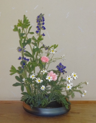 新しいお友達もふえて、 なんかバタバタのおけいこでした。 バタバタしてたのは講師のわたし。 子ども達はいつも通りに、 しっかりいけていたと思います。 ムラサキセンダイハギ。 マメ科のお花が房になっています。 下から咲きあがっていくので、 上の方はまだつぼみ。 やわらかいラインに動きが感じられます。 実際、重心が取りにくかったですネ。 カーネーションが2本とマーガレット。 広がるマーガレットの葉を整理しながら、 足元をまとめていきました。 ひとりひとり、個性を発揮しな...
