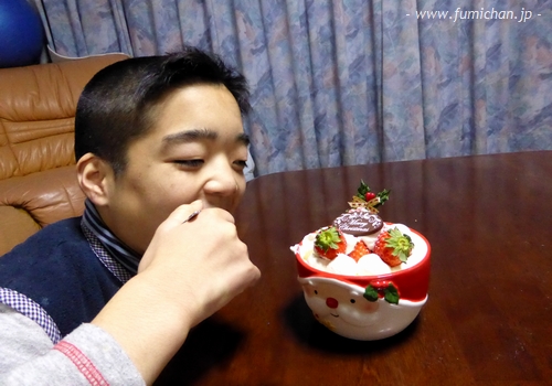 〔自宅にて〕 今日はクリスマスイブ、一週間前の雪も融けてホワイトクリスマスではなくなったけどプレゼントも沢山もらって嬉しかったです。とても大きなクリスマスぷりんもお姉さんに甘えて食べさせてもらって美味しかったです。 JUGEMテーマ:子供達との記憶