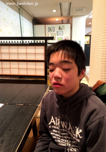 〔S温泉Y館にて〕 初雪から3日間とても寒い日が続くので夕方みんなで温泉に出掛けました。露天風呂が修繕中で入れなかったのが残念でしたがゆっくり入浴したのでとても温まりました。写真は食堂でお膳が出てくるのを待っている時です。ごはんも美味しかったです。 JUGEMテーマ:子供達との記憶