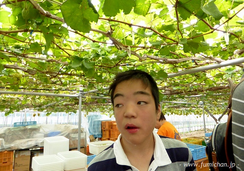 〔ブドウ園にて〕 週末毎に行っていたぶとう狩りもいよいよ終わりそうです。今日は「ぶどう祭り」で名物の”ねぎ焼き”を食べたり、チューリップの球根の掴み取りをしたり、今年最後のぶどう狩りを楽しみました。試食のぶとうもとても美味しかったです。 JUGEMテーマ:子供達との記憶