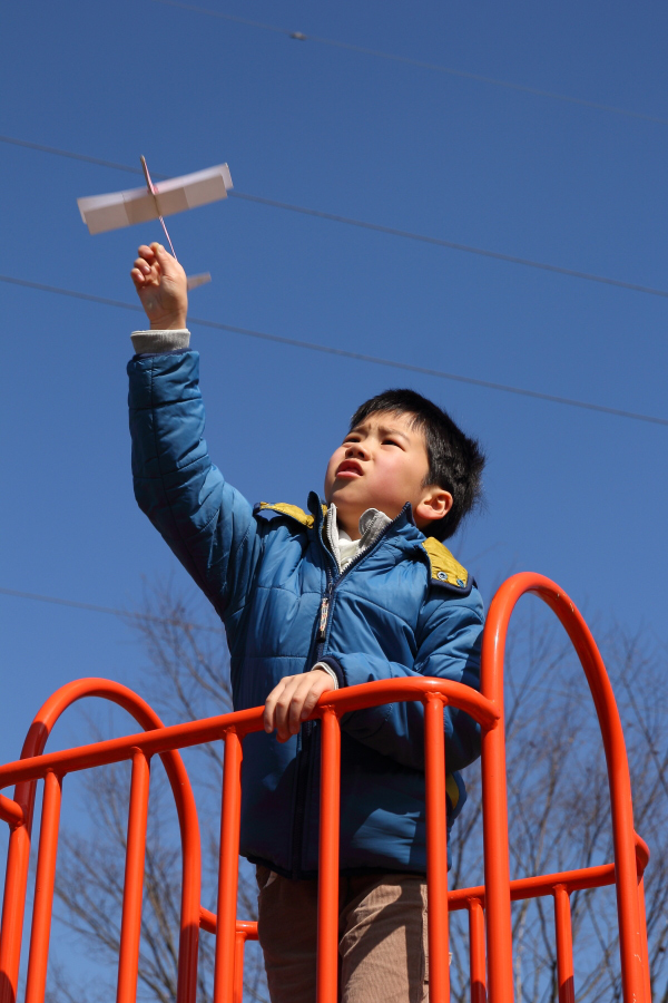 図書館の帰りに、近隣の公園へ立ち寄る。 坊が最近凝っている、紙飛行機の試験飛行に付き合った。紙飛行機の第一人者二宮氏の本を熟読し、幾つかのお手本を作り上げて後に、オリジナルの飛行機を3機程デザインしていた模様。 初めて複葉機のデザインにチャレンジした時には、珍しくアドバイスを求めてきたり(自分が考えるより飛ばなかった事…重心・バランスの調整が必要だった。)した様子を鑑みると、坊も少しづつ大人になってきたのかなぁと思った次第(笑)。 親という立場の人間なら誰もが感じる事なのだろうが...