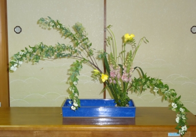 外は寒いけれど、おけいこのお花はすっかり春! 明るい春がもうすぐです。 こでまりの枝を、大きく左右に流して、 のびのびとしたお花です。 ○○ちゃんらしいな〜と。 きっと本人もお気に入りのはず。 だからお花は楽しい! こちらは1年生。 今日はこでまりの枝を切りました。 草物よりかたくて、やっとハサミを使うことができました。 小さな手でも、がんばりましたね。 だんだん上手になりますから、安心して! でも、ケガには細心の注意をしましょう。 こでまりと金魚草とフリージア。 バラ...