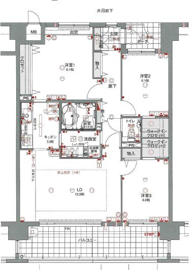 岡山県岡山市北区伊福町3丁目11-1 (JR山陽本線岡山駅から徒歩約12分 (950m)) マンション名:リビンコートプライム伊福町 こちらのマンションの間取り図面を紹介致します。 3LDKで広々としたリビングが特徴的な間取りです。 ウォークスルークローゼットが有り、洋室から洗面所へ移動することができます。 キッチンには窓が有り、換気をして頂きながら料理をして頂くことができます。 また浴室に窓が付いており、外の空気を感じながら入浴して頂くことができます。 &n...