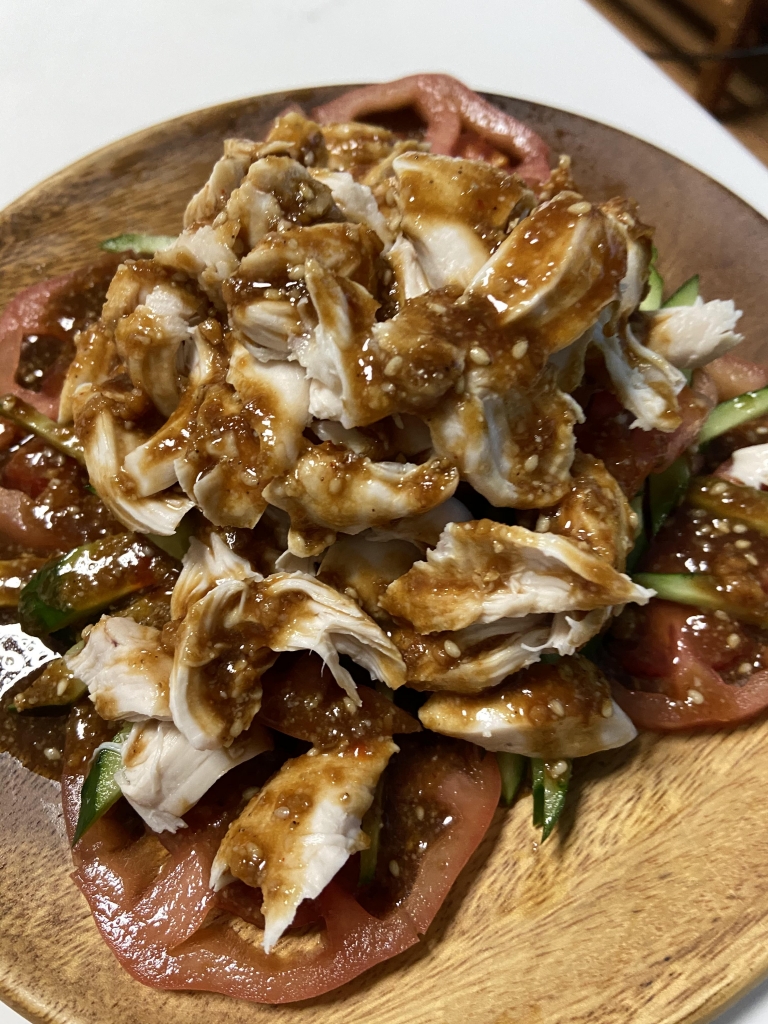 こんばんは株式会社ウェーブハウスの秦泉寺(じんぜんじ)です。 外食をしなくなり、自宅でご飯を作る日が増えています。休日に肉や魚を大量に購入し一気に冷凍。 冷凍することで少しずつ使えるので、買い物をする回数も減らせています! 「棒棒鶏(バンバンジー)」です。 中華の素的なものがあれば簡単に作れますが、今回は一手間かけ豆板醤、お酢、味噌などなど 複数の調味料を組み合わせて作りました。 ゆでた鶏のササミを一口サイズに裂き、冷やしたトマトときゅうりと合わせて完成です♪ たれ...