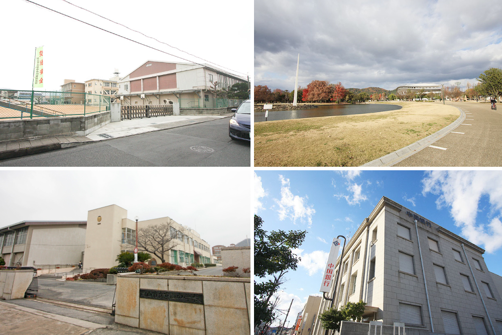 岡山県岡山市北区伊福町3丁目11-1 (JR岡山駅から徒歩約12分 (950m)) マンション名:リビンコートプライム伊福町 周辺施設 左上・岡山県総合グラウンドまで徒歩10分(800m) 右上・伊島小学校まで徒歩7分(570m) 左下・京山中学校まで自転車で11分(1800m) 右下・伊福町郵便局まで徒歩5分(400m) ...