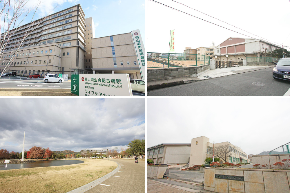 岡山県岡山市北区清心町17-32 (JR岡山駅から徒歩約13分 (1000m)) マンション名:リベール清心町 周辺施設 左上・伊島小学校まで徒歩10分(800m) 右上・岡山県総合グラウンドまで徒歩2分(150m) 左下・京山中学校まで自転車で13分(2130m) 右下・中国銀行奉還町支店まで徒歩9分(660m) マンション外観 ...