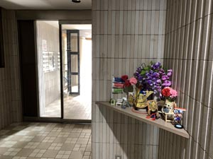 JUGEMテーマ:賃貸マンション 桜も 散り始めたということで マンションのエントランスの模様替え 単語の節句バーションに 変更 兜を 真ん中において 藤の花で 飾り付け そして カーネーションを 指して 季節を アレンジ。 藤の花の下に 机をおいて その上で ネコが ひなたぼっこをしている演出をアレンジ。 毎年 いろいろなパーツが 増えるので 豪快な飾り付けに...