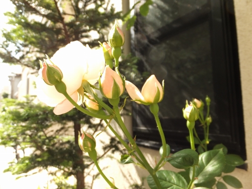 小庭の薔薇が、今年も咲いてくれました・・・! こんなにツボミがたくさん。 嬉しくて嬉しくて。 5月20日、朝早く一人遠方へガラスの買い出しへ出かける前に、最初の一輪の開花を見つけました。 それからは次々と花開いて・・・ 感激・・・ 昨年早春に植えてから2度めなのですが、ひとりで感動しています(笑) フレンチシックなクリームピンク、大好きです。 品種はブリーズ。 赤い実をつけて見頃となったジューンベリーと時期もまさに一緒! うちの小庭のなかでは一番輝く季節かもしれま...