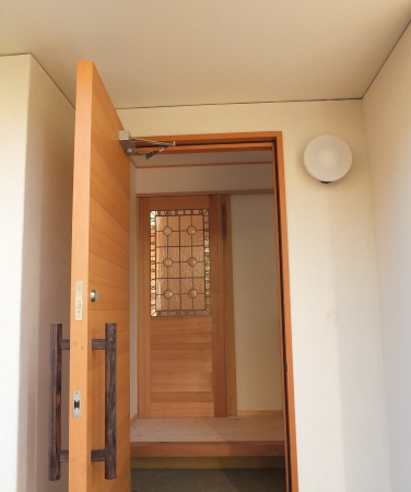 練馬区石神井台の新築、T様邸は昨日がついに引き渡し。 記念すべきその日は晩秋でも暖かい、抜けるような秋晴れ。 ロンデルの入ったステンドグラスパネルが 綺麗に取付けられたとの事で見に行ってきました…! 玄関ドアを開けると真っ先に目に入る真正面の引き戸に入りました。 このお家の雰囲気を印象付ける大事なところだと頭に刻み作りました。 ナチュラルですが実は凝っている素敵な玄関ドアとも自然に溶け込んで・・・ リビングからたっぷりの光を受けて。 「クラシックな」「古書が似合うような」・・・と...