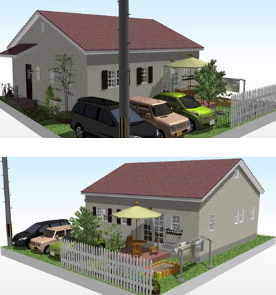 突然ですが、我が家の外構は自分たちでやる予定であります。 んでどんな感じにするか…と日々妄想をしており、 車は最大3台とまれるくらい確保したいな〜とか思ったりしています。 ただ我が家は現在軽一台のみですがねっ(・∀・) お引越ししてある程度お金が貯まったら芋さんは車を買いたいそうです。 どうなることやら…。 んで半分はお庭に。芝生にあこがれる! 種まいて結構簡単にできるらしいのでその方法でいこうかなと。 てきとーでいいんです、はい。 道路面は目隠しでちょい高めの柵が欲しいな...