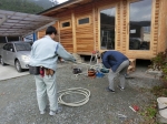 JUGEMテーマ:ログハウス 弟の知人が来てくれました。 電気工事です。 コンセント関係についてはほとんど取り付けていました。 配電盤の取り付けと配線をしていただきました。 3人がかりであっと言う間に完了。 餅は餅屋です。 管理人と言えば、構造用合板の運搬。 間柱の設置。 配電盤はこんなになりました。  ...