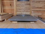 JUGEMテーマ:ログハウス 午後からは冷たい雨となりました。 作業は室内なのでへっちゃら。 昨年までとはえらい違いです。 室内は小さな石油温風ストーブ1個でもかなり温かい。 午前中にトイレの間仕切りを完成させました。 午後からはユニットバスのボルト固定用板作り。 コンクリート基礎の上に設置しないのでこの板を床に取り付けます。 排水パイプの穴も開けました。 パイプの穴は塩ビ管の太さぎりぎり。 塩ビ管の長さが少し長いので一人では設置することができま...