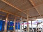 JUGEMテーマ:ログハウス 昨日に引き続き作業が続きます 本日は天井板の取り付け お手伝いはシーちゃんとTさん それに管理人の弟 天井板は昨日の雨で数枚が濡れてしまっています 取り付けた天井板から雨水もしたたっています かなりのダメージですが 午後までに見かけは何ともなくなり乾いたように見えます 取り付けも順調 しかし ここで天井板の不足です 予備に作ったくらいの板ですが あと60?くらい不足 この部分を残して ほぼ天井板の取り付け完了です 下から見るとと...