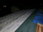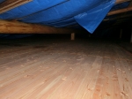 JUGEMテーマ:ログハウス 昨日は野路板を天井の半分くらい固定しました 雨が降らないのはラッキーなのですが 霜と結露対策に躍起になっています 何とか早くに屋根を取り付けたくて猛ダッシュ(爆) 本日の成果です 北側の屋根にシートをひくことができました 棟部分にはヤードに建てた倉庫の屋根に使った残りのシートをひいています あれだけ開放的だった屋根裏はこんなに窮屈になりました 天井梁...