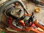 JUGEMテーマ:ログハウス 玉切り製材をしていますが 径の太い丸太が一本 ほんの1?ばかりチェーンソーでそぎ落とせば帯鋸にかかります 早速チェーンソーを取り出しエンジンをかけました ほぼ作業が終了かと思ったとき いきなりエンジンが吹き上がりました エンジンを切ることができません まったくコントロール不能 アクセルレバー意味なし 一体どうしたのか全く分かりません しばらくするとやっと停止レバーで止まりました その後は再起動不能 エンジ...