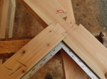 JUGEMテーマ:ログハウス 棟束を立てたついでに母屋束の調整です 棟束のホゾ先に屋根の型板を取り付け 糸をはって屋根勾配をみます 超アナログです(笑) 束の高さが決まりますので束にホゾを切るのですが 間違うといけないので仮組まで待ちましょう すでに一つミスしています 屋根裏に隠れる束にも板をはめ込む溝を掘ってしまっているのですよね それとこんな余計な失敗 寸足らずの当て木作り4箇所 ジグソーで・・・ こんな初...