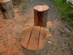 JUGEMテーマ:ログハウス 梅雨入りが目前に迫ってきています 今日はまるで梅雨の前兆状態でした 丸一日ドロ〜ンとしたお天気 山裾の作業場の中は薄暗い 時々霧雨が降る中で昨日から作り始めている馬を完成させました 今回の馬も丸太足 それに、3年前に製材した4メートルの4寸角ヒノキを1本使いました まだ刻んでいないログの梁・軒桁・母屋・棟木を刻むための準備です 梅雨までに何とかしたかったのですが 間に合いません...