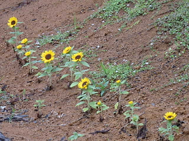 JUGEMテーマ:ログハウス 秋の気配も漂いはじめたこのごろ、やっとヒマワリの花が咲きそろってきました。 種のパッケージにミニヒマワリと書いてあったとおり、本当にミニです。 サイズ感をお伝えするために、割り箸でスケールを作りました。 5センチ、10センチ、15センチ刻みです。 比較的おおきなヒマワリ。 小さめのヒマワリ。 いちばん小さなヒマワリ。 5センチあるかないかです。 ミニヒマワリというより、マイクロヒマワリってかんじです。 ...