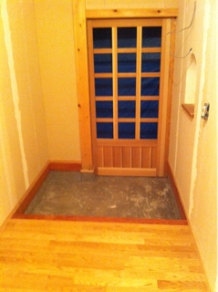 階段と、玄関の踊り場には御影石のタイルを貼ります。 踊り場周囲はグリ石が突き出ているので、グリ石の形状にあわせてタイルを切っていきます。 JUGEMテーマ:セルフ・ビルド