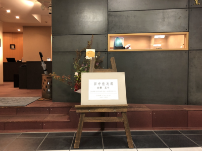 JUGEMテーマ:お茶を楽しむ生活 しぶや 黒田陶苑(渋谷区渋谷1-16-14)では、 田中佐次郎 自撰五十。 会場風景。 見ての通りとしか言いようのない幽玄さです。 「幽玄さ」が日本語として適切かどうかは 自信がありませんが、 とにかく引き込まれる磁力が、 茶碗サイズに満ちています。 炎と土という自然が与えた働きと、 偶然という「神」の働きと、 作陶家の感性と技量の総体は、 梅雨明けの頃の夕焼けが凄みのあるほど美しいように、 意図的でもこれ見よがしではなく、 これしかない的なバラ...