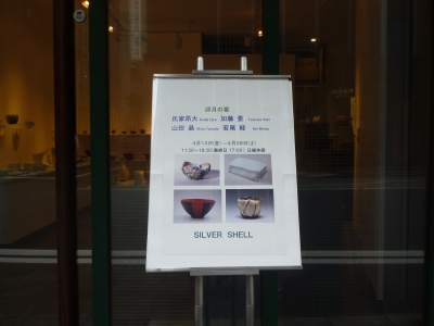 JUGEMテーマ:お茶を楽しむ生活 SILVER SHELL(東京都中央区京橋2-10-10)では、 卯月の宴 展。 会場風景。 加藤委、山田晶、若尾経、氏家昂大、 4人の気鋭、現役作陶家による 茶碗の競演。 貫入の神秘、若尾経。 貫入に銀彩や色漆を施す氏家昂大。 赤地に黒が厳しく配される山田晶。 深く透明な水色の加藤委。 対比の妙というか、 相乗効果というか、 揺るがない美的感性に裏打ちされた 異なる作風が並ぶと、 お互いの個性が際立つなあ、とは素直な感想。 象牙瓷( ぞうげじ...
