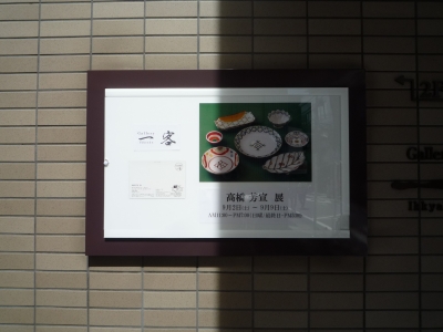 JUGEMテーマ:お茶を楽しむ生活 Gallery 一客(渋谷区神宮前4-7-3)では、高橋芳宣展。 2017.9.2(土)〜9(土) 会場風景。 と書きましても、筆者は1日早く勘違いをしまして、 準備中のギャラリーに、 「初日なのにお客さんがいないなぁ」などと思いながら、 のこのこと入っていったのでした。 お店の御厚意で鑑賞と撮影をさせていただきました。 高橋芳宣は、九谷・須田菁華(三代目)窯に入門した後、 石川県加賀市にて独立開窯(月乃桂窯)、 平成4年から群馬県甘楽町へ陶房を移...