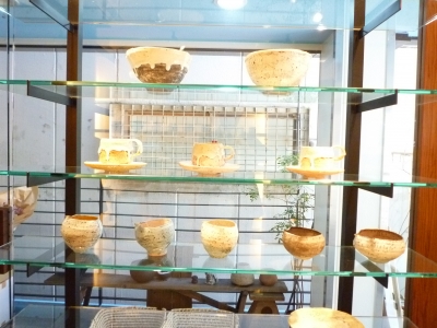JUGEMテーマ:お茶を楽しむ生活 穴窯陶廊 炎色野(渋谷区渋谷2−7)では、鈴木大弓作陶展。 会場風景。 去年の個展からちょうど1年振り。 1年ごとに個展を観賞すれば、 1年間の作陶家の創作上の進化、変化が見えてきて、 別の興味深さも味わえます。 去年の作家紹介文をそのまま転記します。 信楽の作陶家 鈴木大弓(hiroyumi) 1981年仙台市生まれ。 作家に伺うと、陶芸とは無関係の家に生まれたものの、 大学時代の陶芸クラブでその魅力に取りつかれ、 この道に入ったとの事。 驚いたのは...