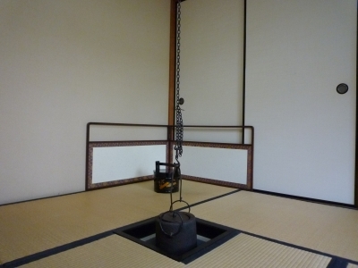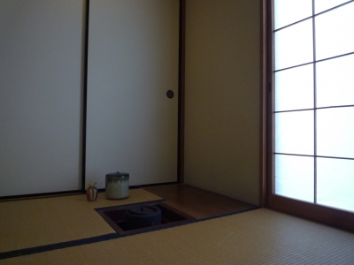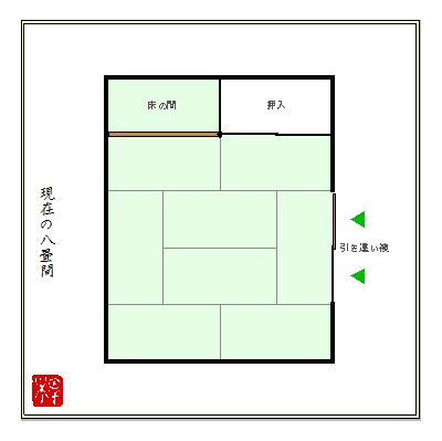 JUGEMテーマ:お茶を楽しむ生活 知人から、自宅の八畳の和室が、 お茶が出来る様にならないかと相談を受けました。 上が現状の図面。 ごく普通の八畳間で、出入り口は引き違い襖の一か所だけです。 ※他の壁には窓が付いていますが、 本論と関係がないので省略しています。 改修工事はせず(入り口はそのままで)、 畳を敷き替え、炉を切るだけで済ませたいそうです。 一見、簡単そうですが、 検討してみると、以外と難しい事がわかります。 で、筆者の答えは下記の図です。 下座床の発想が...