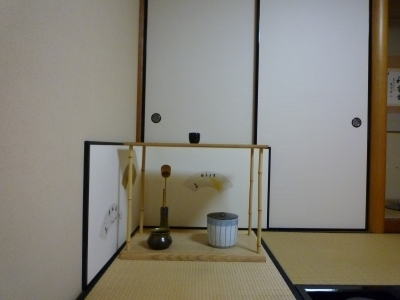JUGEMテーマ:お茶を楽しむ生活 今日は、行之行台子の稽古というより、模範演技披露。当稽古場の筆者の弟弟子(御婦人ですが)がこの度、御家元より、行之行台子までの許状を頂いたので、その伝授に伴うイベントとして、兄弟子(筆者)による実演をおこないました。裏千家の「許状」は、対象になる「お点前」の稽古を始めることを許可する書状で、一般的な「普通免許」や、「一級建築士」のような、実力を認定された後、与えられる「免許」とは手順が異なります。そういった仕組みなので、これから体得することになるお点前を、最初に...