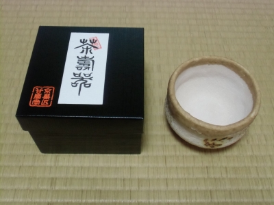 JUGEMテーマ:お茶を楽しむ生活 甘春堂・茶寿器(ちゃじゅのうつわ)を頂いたので、最初にこの茶碗で濃茶を喫んだ後、平花月の稽古。お菓子で出来た茶碗。意外とズシリと重みがあり、ちょっと小振りですが、点てやすそうです。濃茶を点てて出したところ。最初に茶筅通しをするため、湯を茶碗に入れると、かすかにニッキの香りが立ちあがり、※亭主しかわからない程度。これは面白いなと。※香る茶碗!しかし、茶筅通しをする間に、湯が茶碗に染み込んでいくようで、茶碗の糖分が溶け、わずかにべたつき始めます。高台も湿り気を帯...