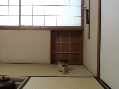 JUGEMテーマ:お茶を楽しむ生活 今日は向切で濃茶、薄茶点前の稽古。寒い冬は、温まる、狭い小間はありがたいのですが、時には、「わび茶」の場で、「道」としての茶をしっかり自覚したいもの。清流庵には八畳の広間と、二畳台目向板向切の小間の、二つの茶室がありまして、と書くと聞こえは良いのですが、実際は、二つの茶室は三本引きの襖を挟んで、隣り合っています。設計した本人が言うのもなんですが、この関係は実に塩梅がよく、それぞれが、それぞれのバックヤードとして、効果的に機能します。お茶事の時は、この小間が、初入...