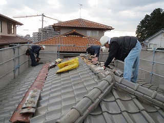 いよいよ工事が始まりました。 まずは解体作業です。 屋根の様子です。 どんどん瓦をはずしていきます。 すごい勢いで… あっという間になくなってしまいました! 内部も解体が始まりました。 これからどうなっていくのか楽しみです! JUGEMテーマ:リノベーション・リフォーム