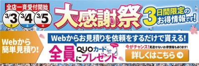 JUGEMテーマ:外壁|屋根の防水塗装 もーすぐは〜るですねえ♪ 明日から3月ということだけで、少々浮かれ気味の江古野です (#^.^#) 何だか社内も浮かれ気味?と思ったら、何やらアップルペイントですごいことが始まるとの情報を聞きつけましたよ!(・д・=)ン?ナニナニ? なんと今週3/3(金)〜5(日)の3日間、ビッグなイベント春の大感謝祭があるんですって☆ いろいろ特典もあるみたい★ 詳しくはホームページに載っていますので、是非コチラをご覧下さい。 おうちの壁がちょっ...