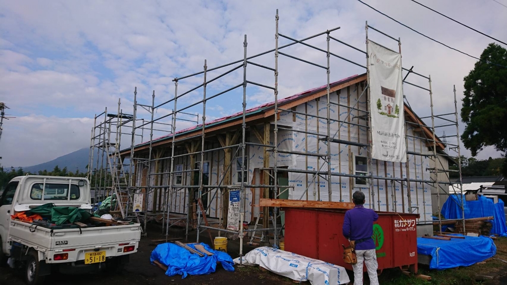 JUGEMテーマ:注文住宅 鹿屋市のK様邸の工事が順調に進んでいます、雨を警戒しながら、外部を中心に進めてもらっています。 外壁の色STO塗り壁が楽しみです。 構造材が雨にぬれなくて良かった。