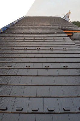 昨日から作業していた瓦葺き作業が終了! 幅はそれほど大きくない我が家の大屋根ですが、こうやって瓦がどーーんと載ると壮観です! 我が家は平瓦にしました。もっと和風の波瓦にした方が良かったかなと思ったりもしましたが、大屋根のすっとしたスタイルにもあっている平瓦を選択。こうやってみると、平瓦にして良かったなと思います。(でも歩道に立つとあまり瓦や屋根が目立たないのが残念・・・・)。 ちなみに家の中には窓が納品されていました!! うちの窓はLow-e ペアガラスで、サッシは...