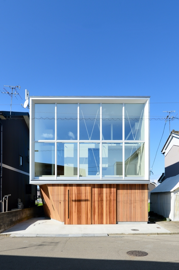 こんにちは。連日の酷暑、いかがおすごしでしょうか? 今日からお盆休みという方も多いのでしょうね。 台風をもきておりますし、猛暑日が続きますので、熱中症などにもご注意ください。 さて、本日ご紹介するのは、こちら。ユニークなフォルムのお宅です。 窓ガラスに青空が映ってとっても綺麗ですね〜。 外観からはわかりませんが、こちらのお宅は、1階がガレージ、2階が居住スペースになっております。 居住スペースの壁一面がガラス張りという思い切ったデザ...