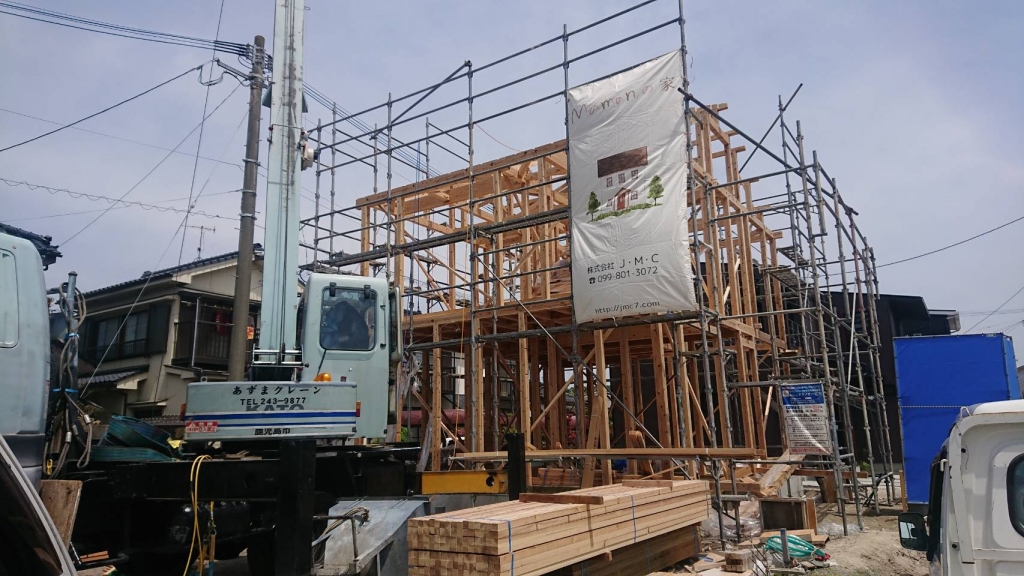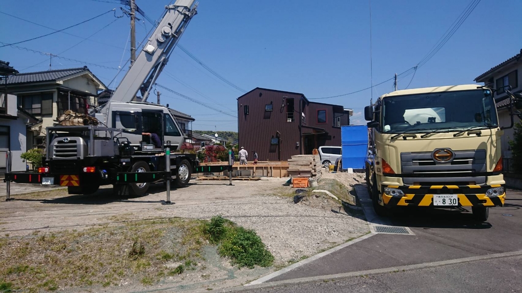 JUGEMテーマ:注文住宅 M様のお家の棟上げです。 基礎の時は、「思ったより小さいね」の感想でしたが、大きいですねに変わりました。 とっても喜んで頂いています。 これからますます楽しみ。