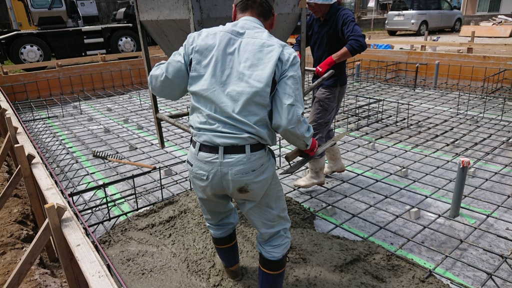 JUGEMテーマ:注文住宅 先週、F様邸基礎の配筋検査に合格したので、 本日は、クレーン車にお願いして、基礎のコンクリート打設でした。暑かった。 皆さんお疲れ様です。